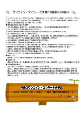 ※「ワンコイン・コンサートご来場のお客様へのお願い」を必ずお読みください。