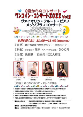 ワンコイン・コンサート2022 Vol.2 ヴァイオリン&フルート&ピアノ&メゾソプラノ