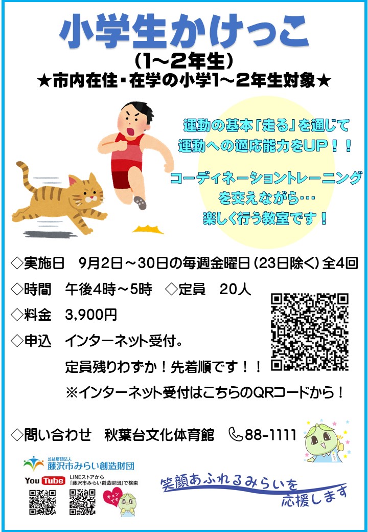 【秋葉台文化体育館】小学生かけっこ(1~2年生)募集中!