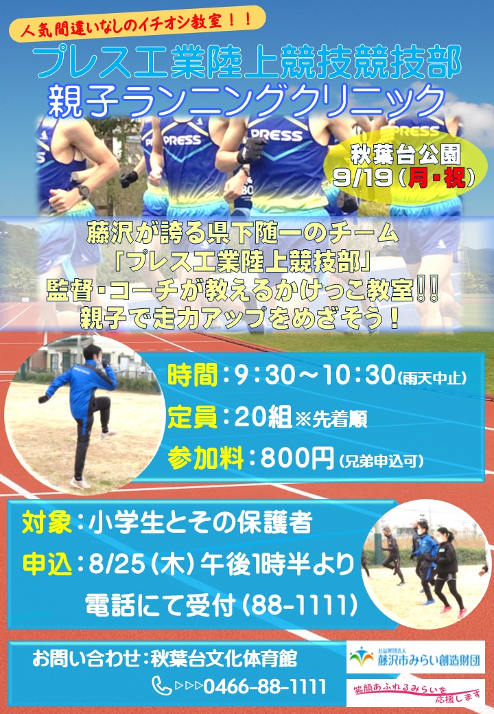 【8/25受付開始!】「プレス工業陸上競技部親子ランニングクリニック」参加者募集!