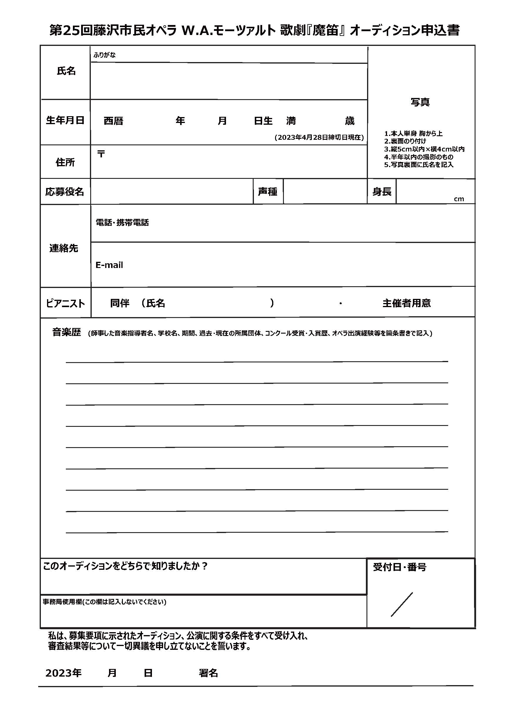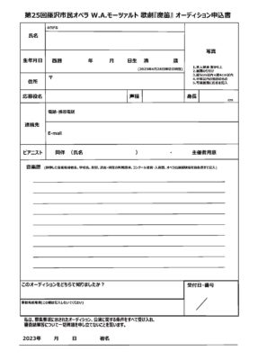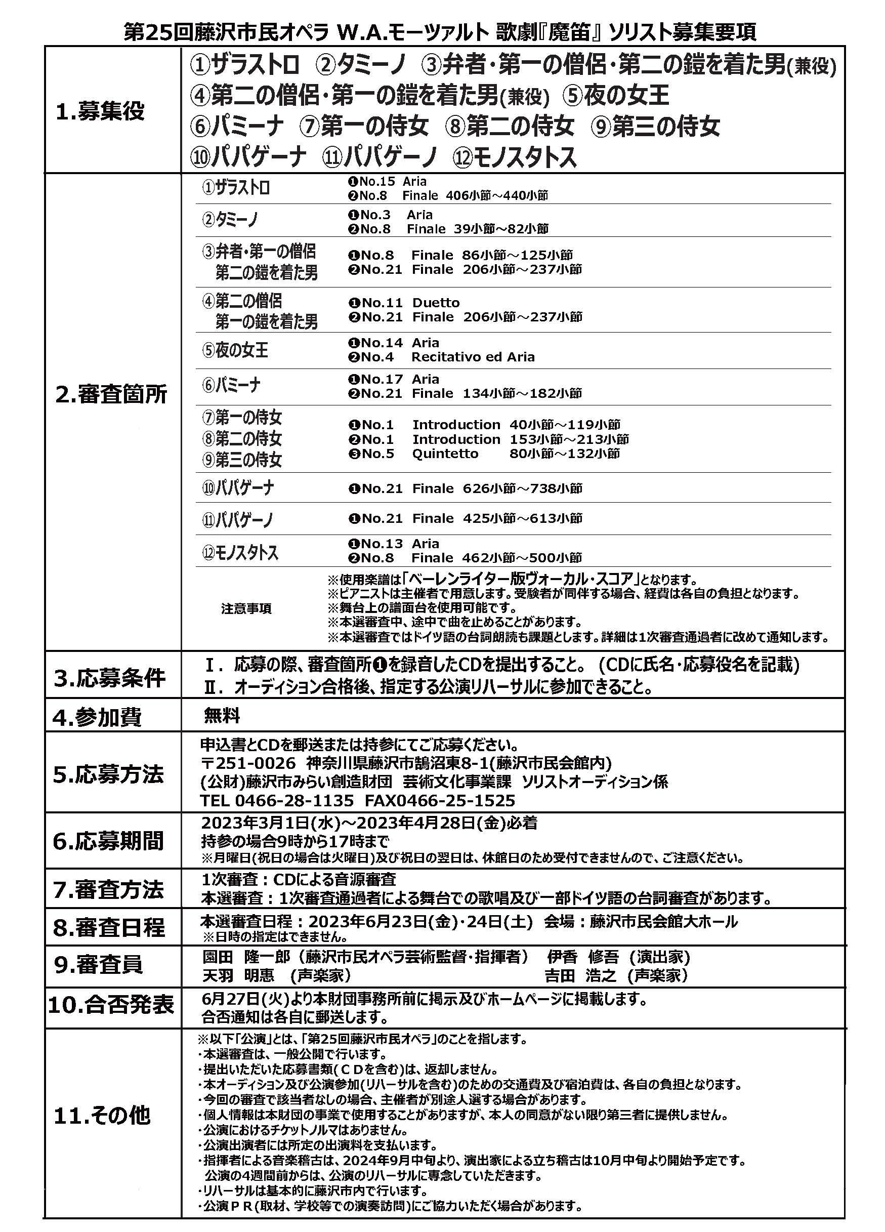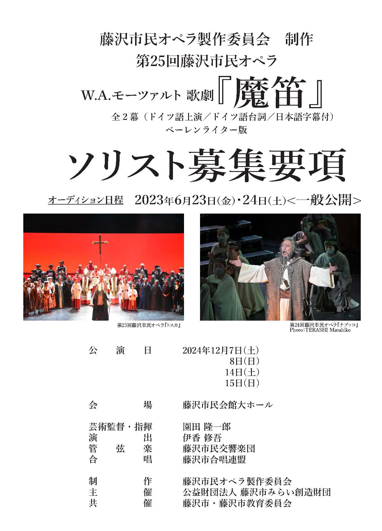 第25回藤沢市民オペラ W.A.モーツァルト</br>歌劇『魔笛』ソリスト公開オーディション