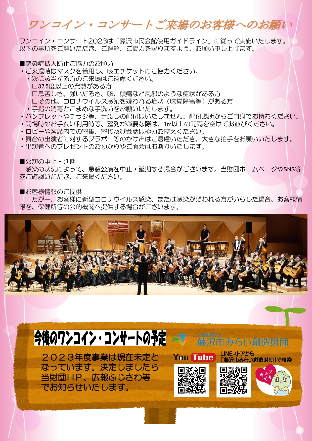※「ワンコイン・コンサートご来場のお客様へのお願い」を必ずお読みください。