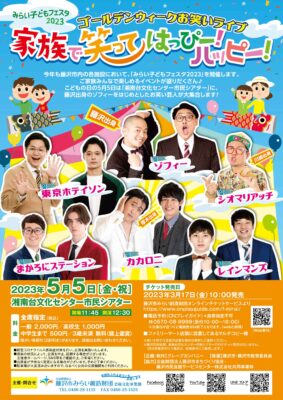 【出演者変更のお知らせ】みらい子どもフェスタ ゴールデンウィークお笑いライブ ~家族で笑ってはっぴー!ハッピー!~