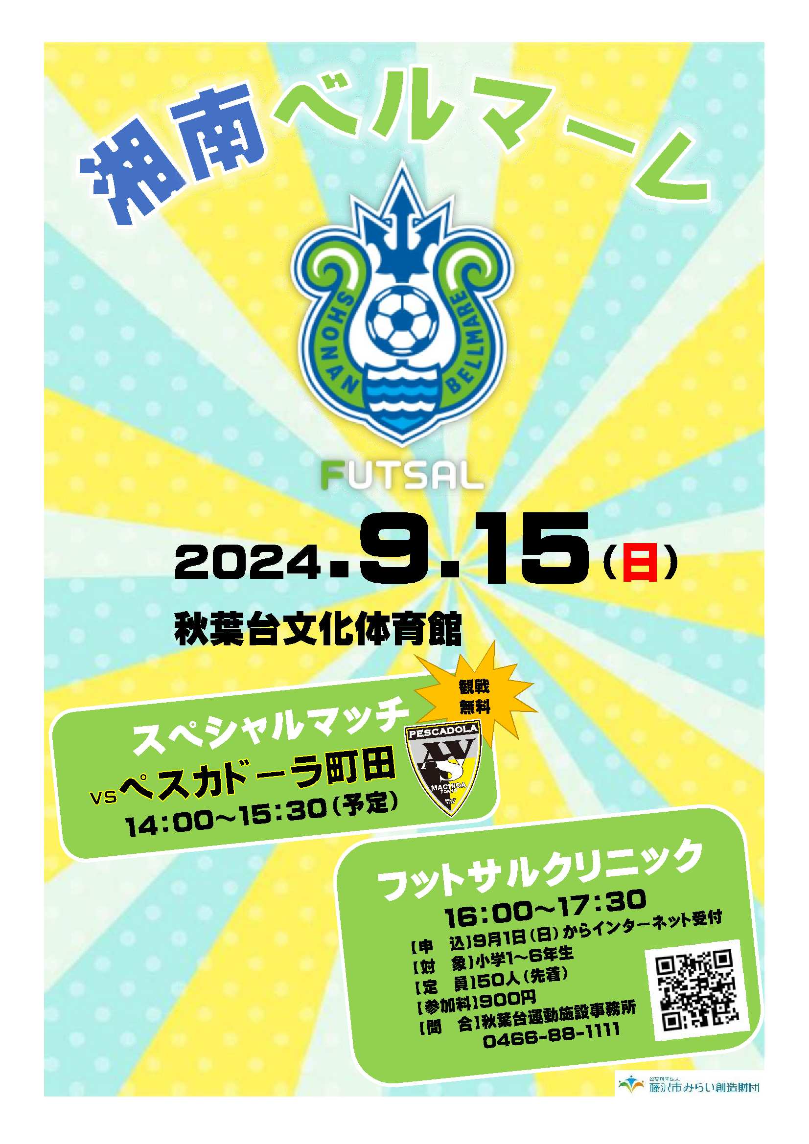【秋葉台文化体育館】湘南ベルマーレ フットサルクリニック2024 参加者募集