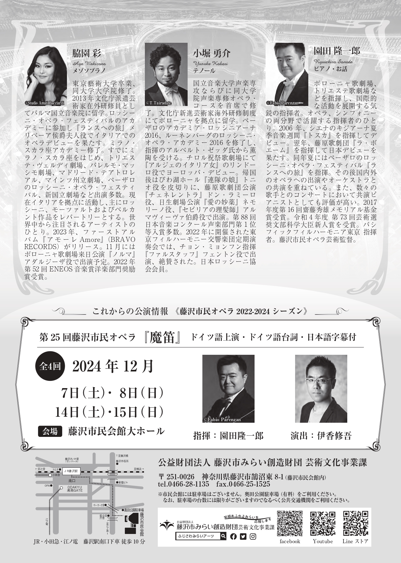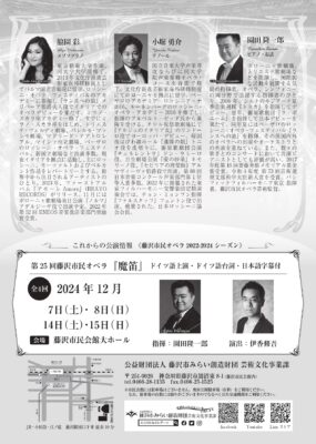 藤沢市民オペラ2022-2024シーズン芸術監督で指揮者の園田隆一郎が、オペラ界大注目の歌手とともに、美しい歌声と楽しいトークをお届けする人気シリーズ第18弾!!