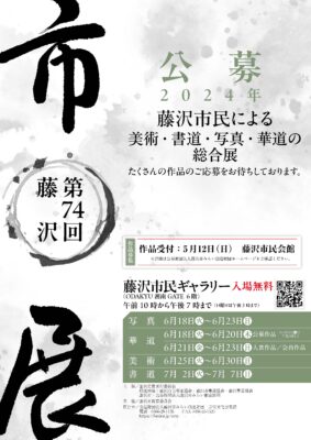 美術・書道・写真・華道の各部の作品の総合展「第74回藤沢市展」を以下のとおり開催いたします。みなさまのお越しを心よりお待ちしております。