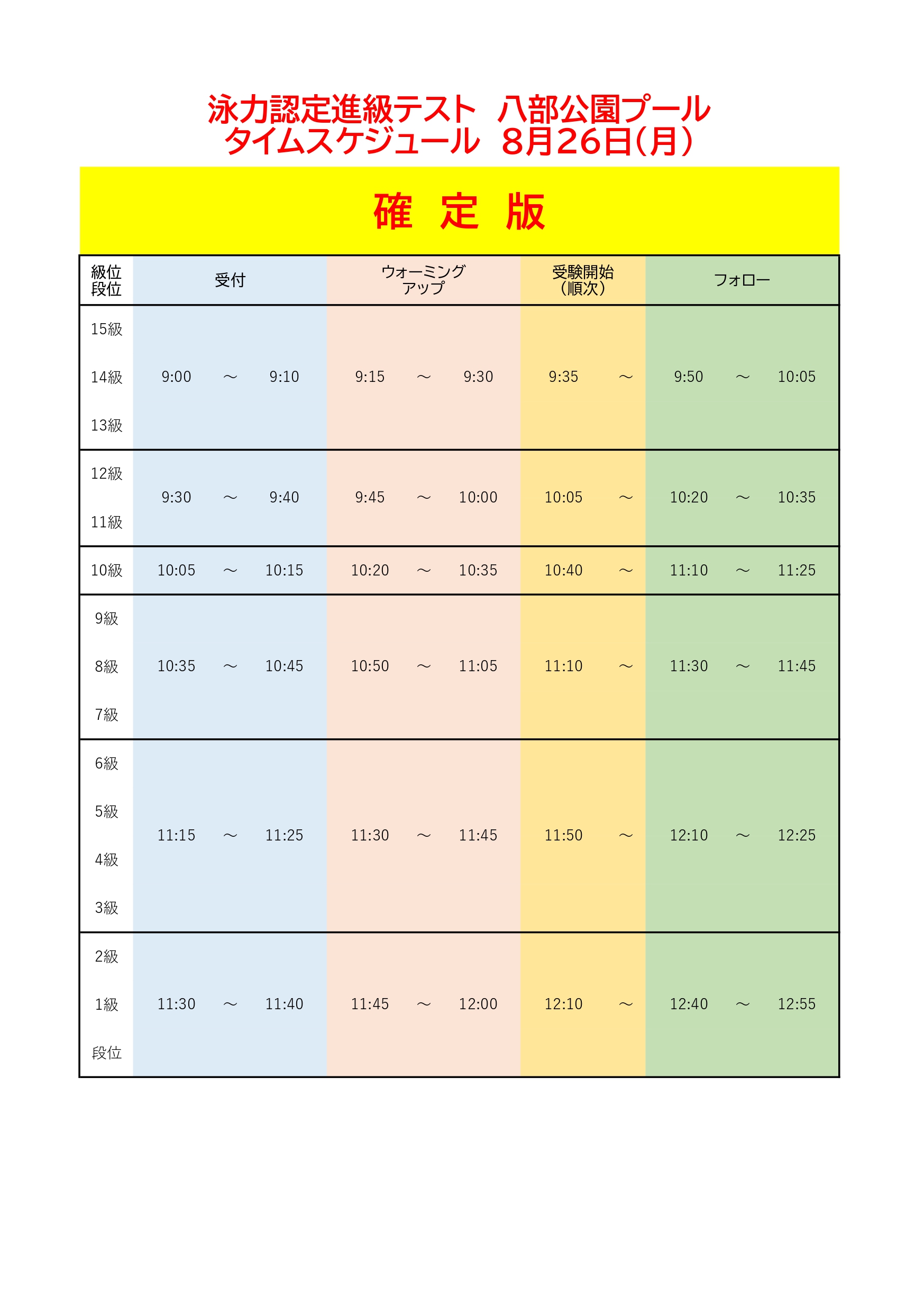 第33回泳力認定進級テスト開催のお知らせ(八部公園プール)