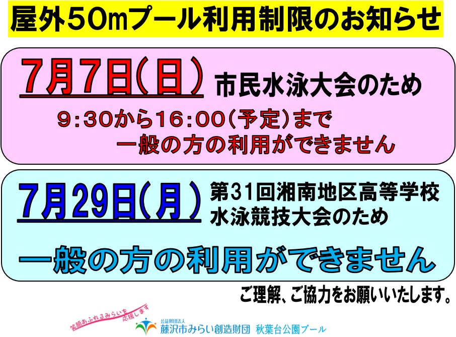 2024年7月7日 / 最終更新日 : 2024年7月7日 akibadai イベントお知らせ 秋葉台公園プール 屋外50mプール利用制限のおしらせ Tweet クリックして印刷 (新しいウィンドウで開きます) 印刷