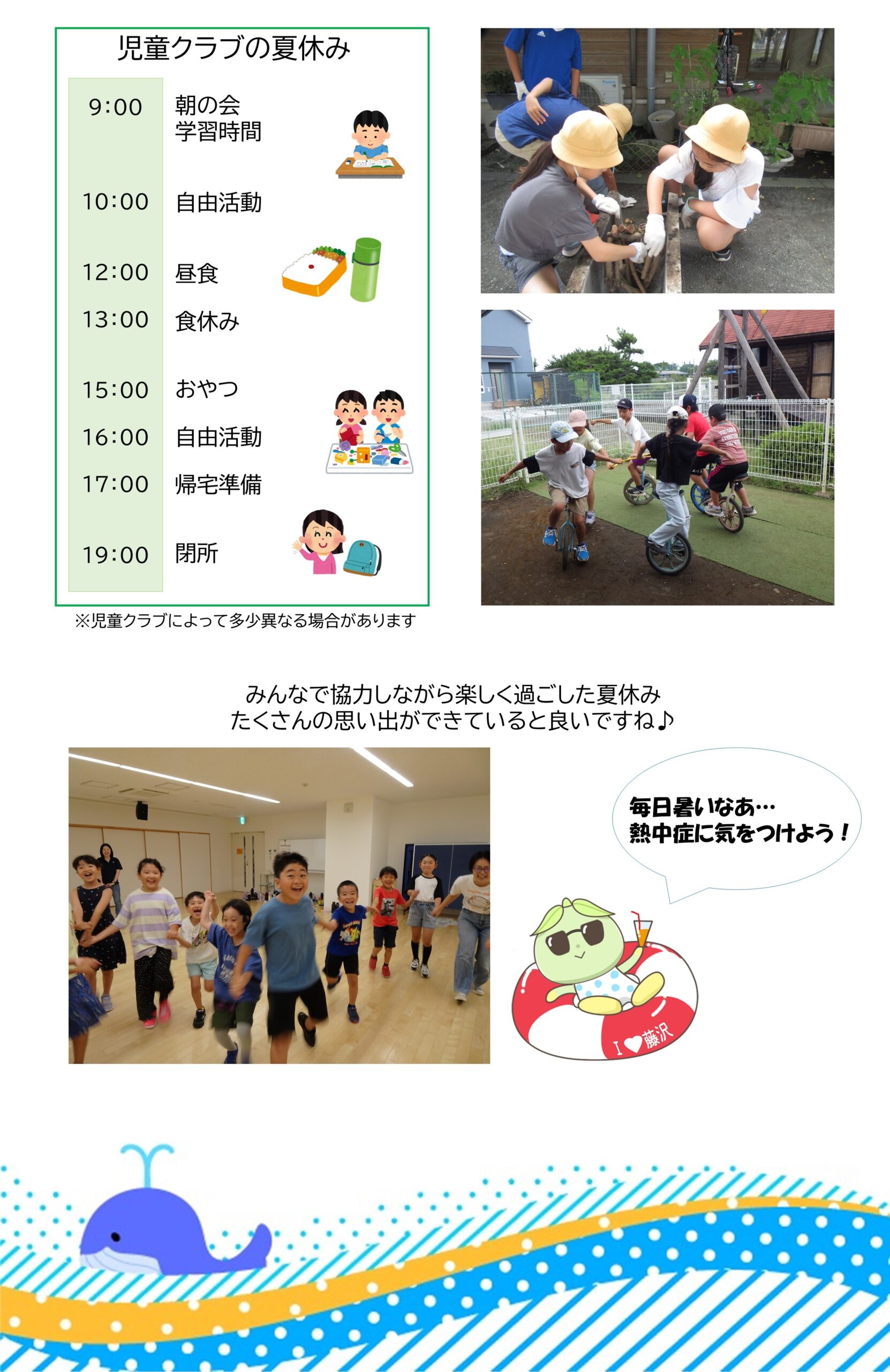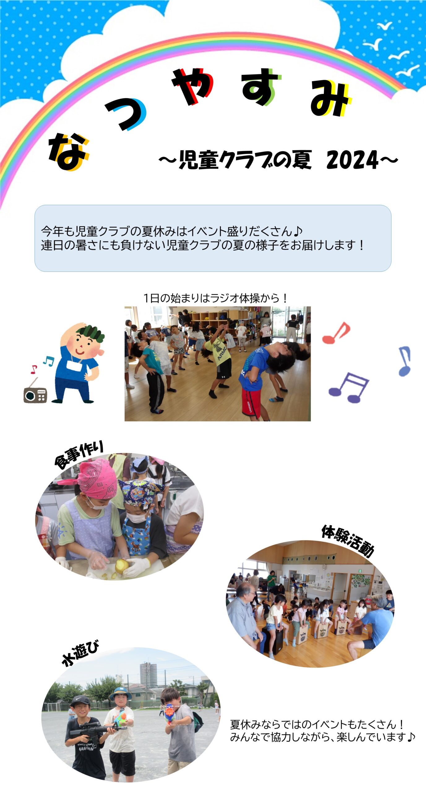 2024/09/01 児童クラブ 2024年度 児童クラブの夏休み カテゴリ 児童クラブ 前へ 第111号 児童クラブの夏休み ~Pick Up 食事作り~ 次へ 入所申込から入所まで(2025年度入所) より良いウェブサイトにするためにみなさまのご意見をお聞かせください 質問:このページの内容は参考になりましたか? 参考になったふつう参考にならなかった 質問:このページの内容はわかりやすかったですか? わかりやすかったふつうわかりにくかった 質問:このページは見つけやすかったですか? 見つけやすかったふつう見つけにくかった