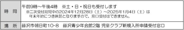 2025年度 児童クラブ入所申込のご案内(2024.11.13)
