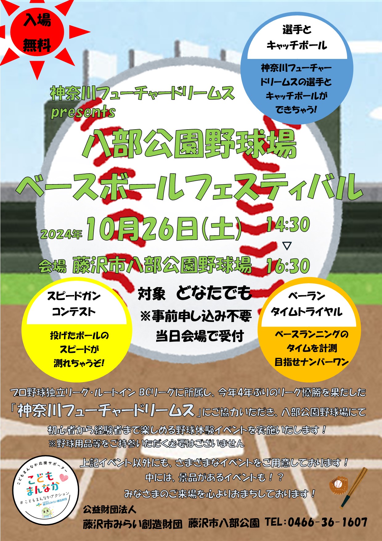 【10/22更新!】神奈川フューチャードリームス presents 八部野球場 ベースボールフェスティバル 開催!