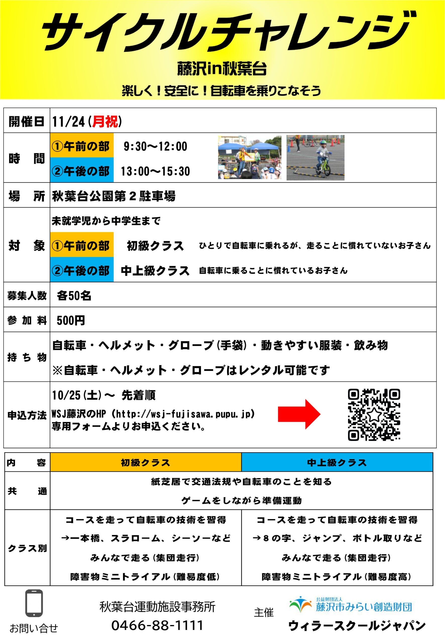 - 雨天中止。前日11/23(日)18時までにWSJ藤沢のホームページで案内します