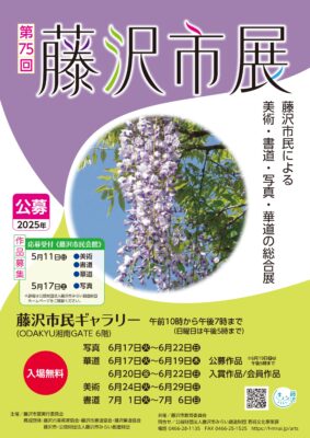 市民の芸術文化活動の支援と振興を図ることを目的として、美術・書道・写真・華道の各部の作品を公募する総合展「第75回藤沢市展」を以下のとおり開催いたします。みなさまのお越しを心よりお待ちしております。
