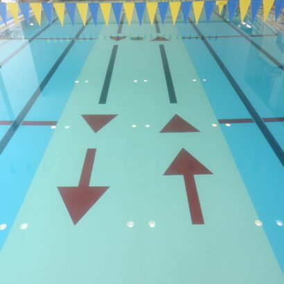 年間を通じて快適に水泳を楽しめます。25m完泳のためのレーンが設けられています。