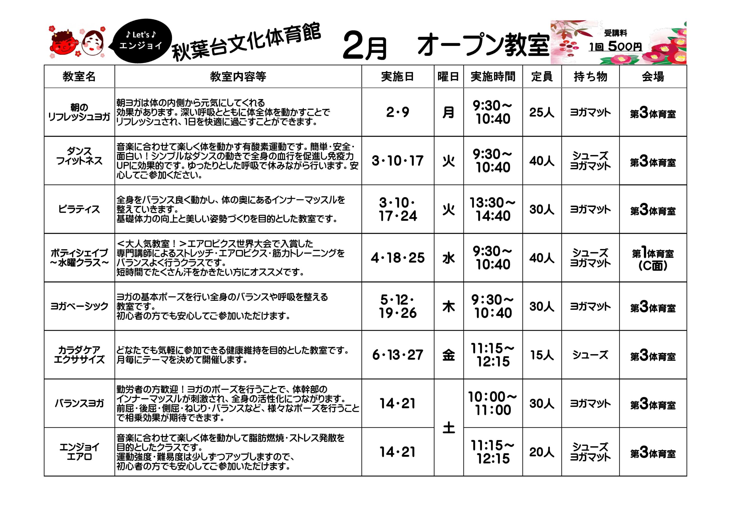 1回500円!事前申込不要!