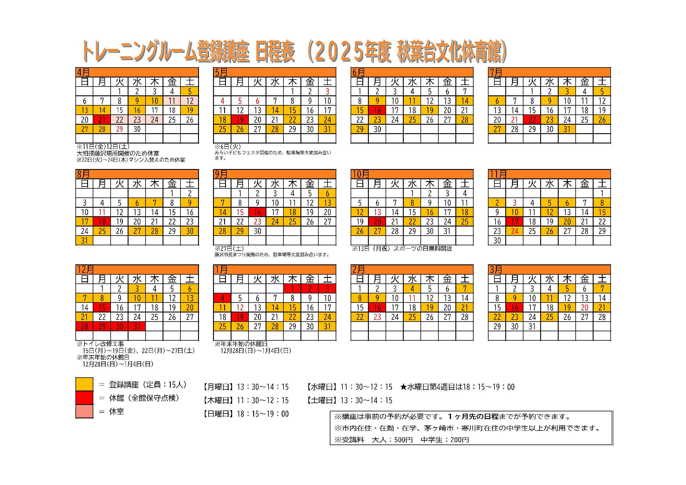 ◇秋葉台文化体育館トレーニングルーム登録講座開催予定