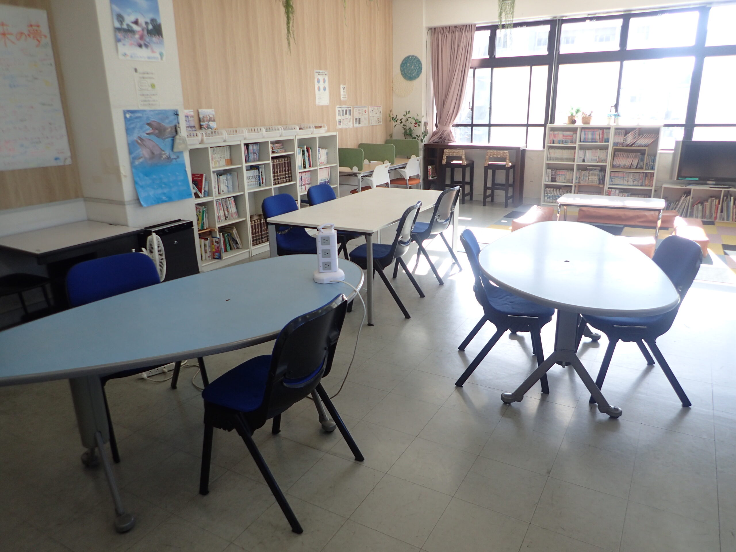 フリースペースには、卓球台、テレビ、マンガなどがあり、思い思いに過ごせる場所になっています。