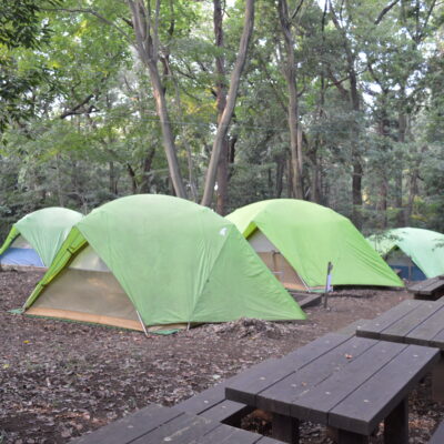 家族・小グループのデイキャンプは通年でご利用いただけます。主催事業の親子キャンプ期間は、少年の森のテントに宿泊できます。