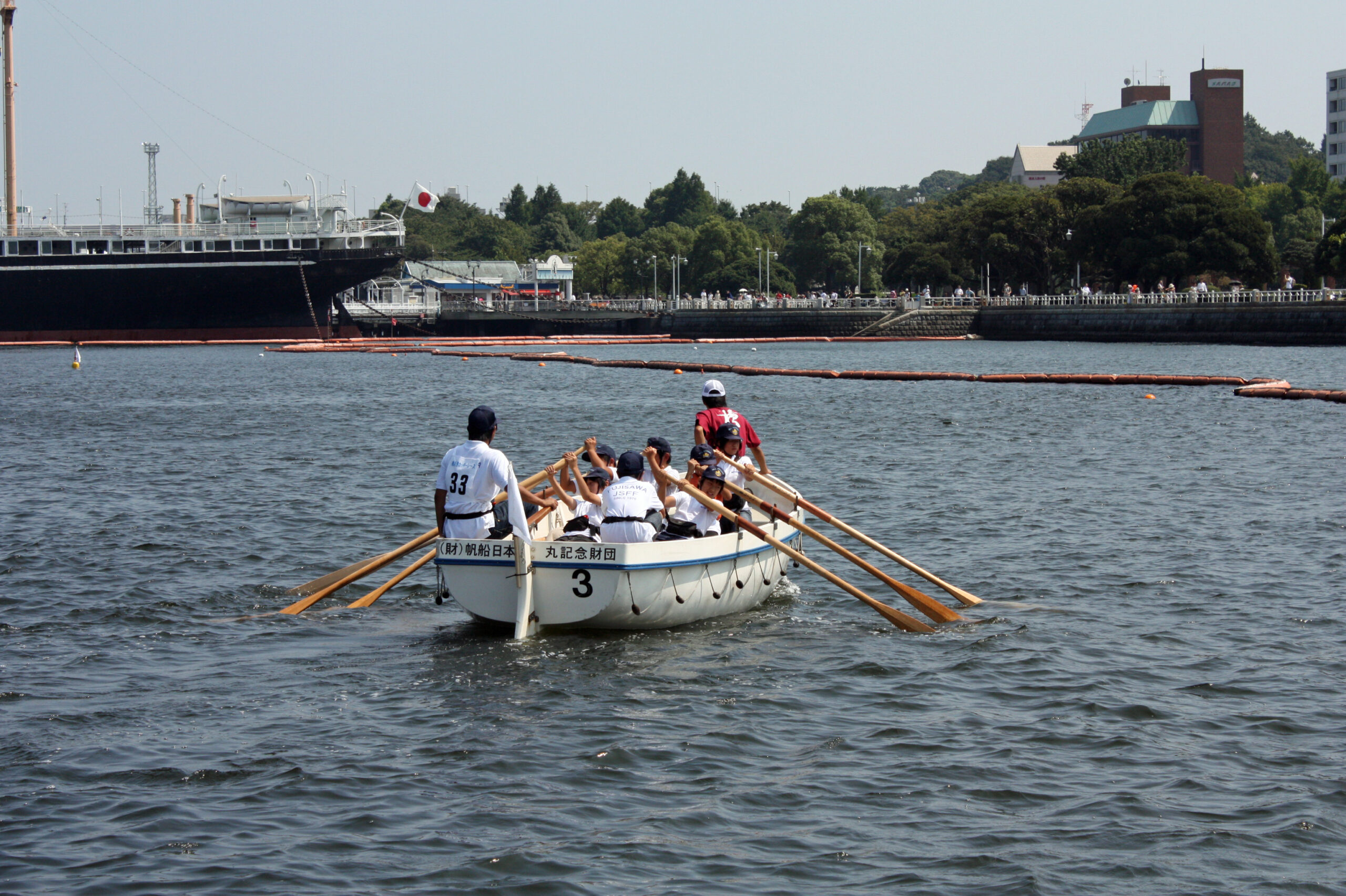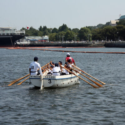 - 横浜港カッターレースに出場した小学生チーム、One Teamでオールがきれいに揃っています